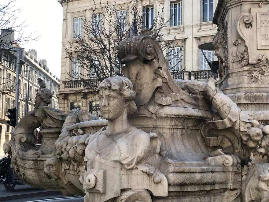 かつてこの場所には、1720年のペスト災害を乗り越えたマルセイユ市民の勇敢さを讃えて設置された噴水がありました。